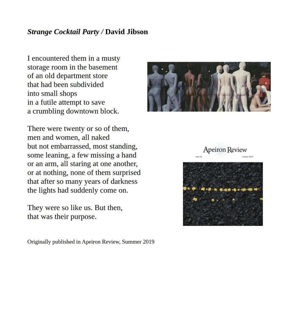 Strange Cocktail Party / David Jibson Published on November 3, 2024 by Editorial Staff Share this: Click to share on X (Opens in new window) X Click to share on Facebook (Opens in new window) Facebook Like Loading... Related