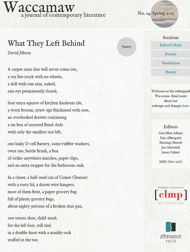 This poem first appeared in the Waccamaw Journal from Coastal Carolina University and is now is included in my collection: Protective Coloration from Kelsay Books. It can also be purchased from Amazon.