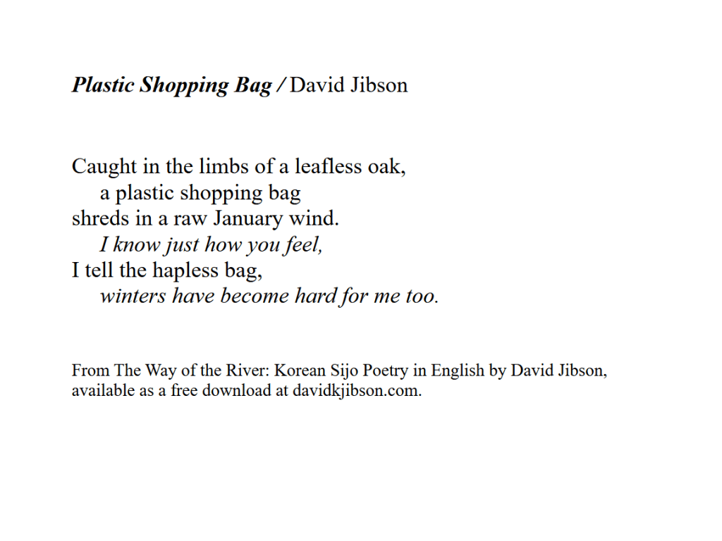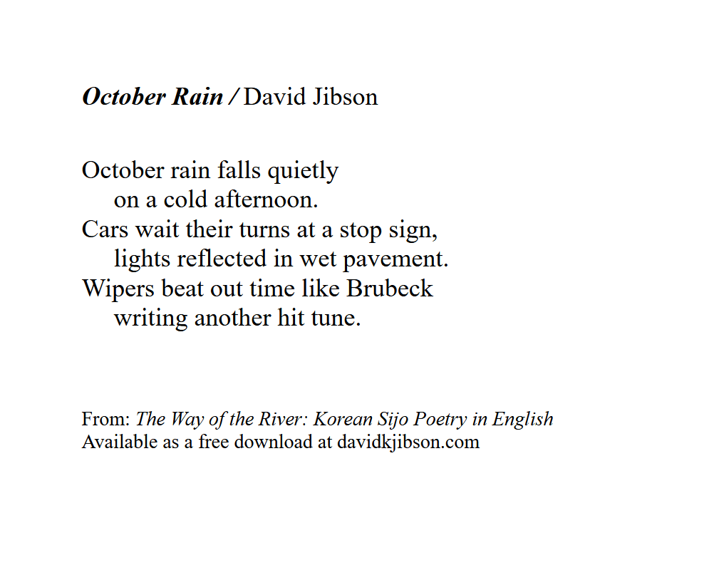 Twelve Korean Sijo poems in English with text. Read by the author.
